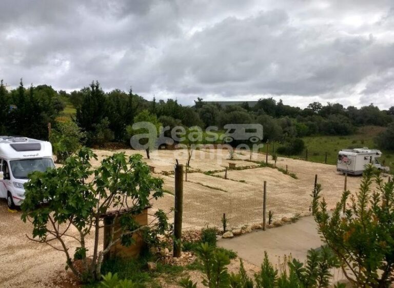 El área de autocaravanas CampingCar Figueira (Faro-Algarve, Portugal) se encuentra a 1,5 km de la carretera N125 y a 6 km de la salida 4 de la autovía A22, en un recinto privado vallado con suelo de zahorra bien nivelado, amplias plazas reservadas delimitadas e iluminación nocturna, sin sombras, situado en una zona de fácil acceso con bonitas vistas, tranquila para pernoctar, en un entorno rural.