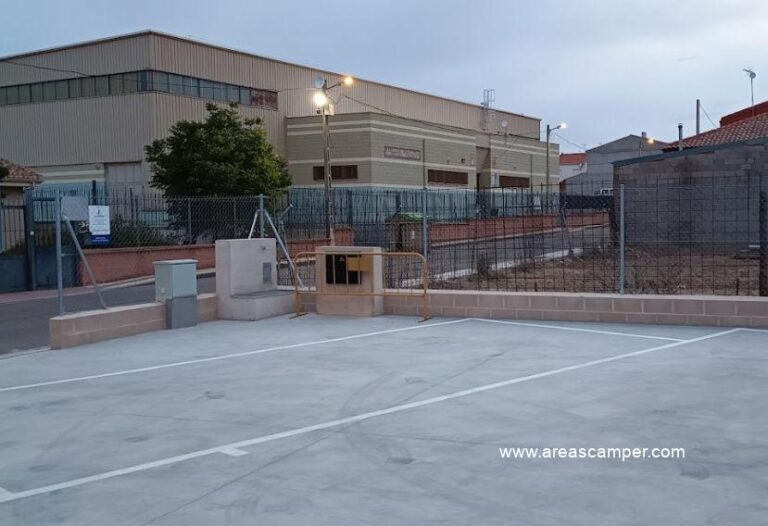 El área de autocaravanas de Camuñas (Toledo) se encuentra a 2 km de la salida 69 de la autovía CM-42, a 8 km de la salida 121A de la autovía A-4 y a 600 m de la carretera CM-400, en un recinto pavimentado bien nivelado, con 3 amplias plazas reservadas delimitadas e iluminación nocturna, sin sombras, situado junto al polideportivo, en una zona de fácil acceso con bonitas vistas, tranquila para pernoctar, del extrarradio de la población.