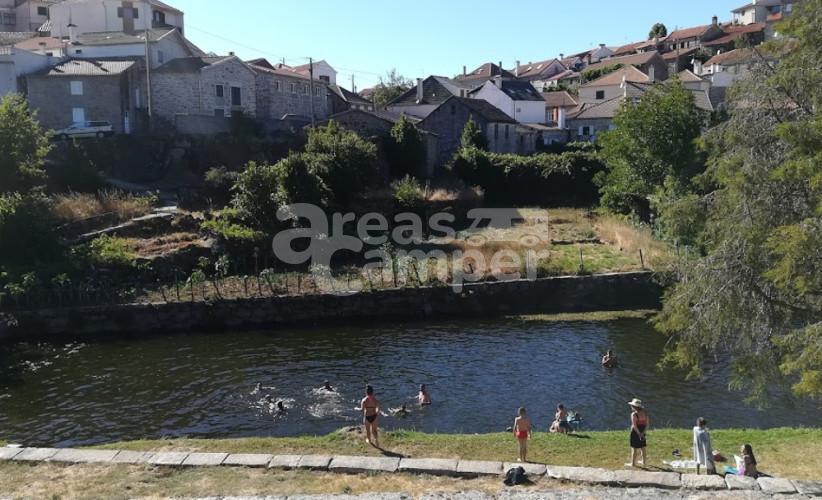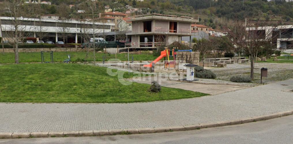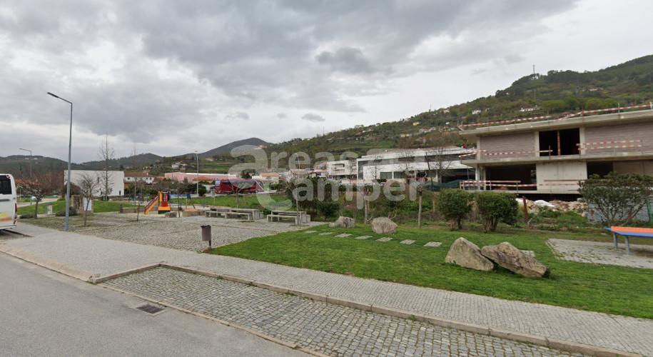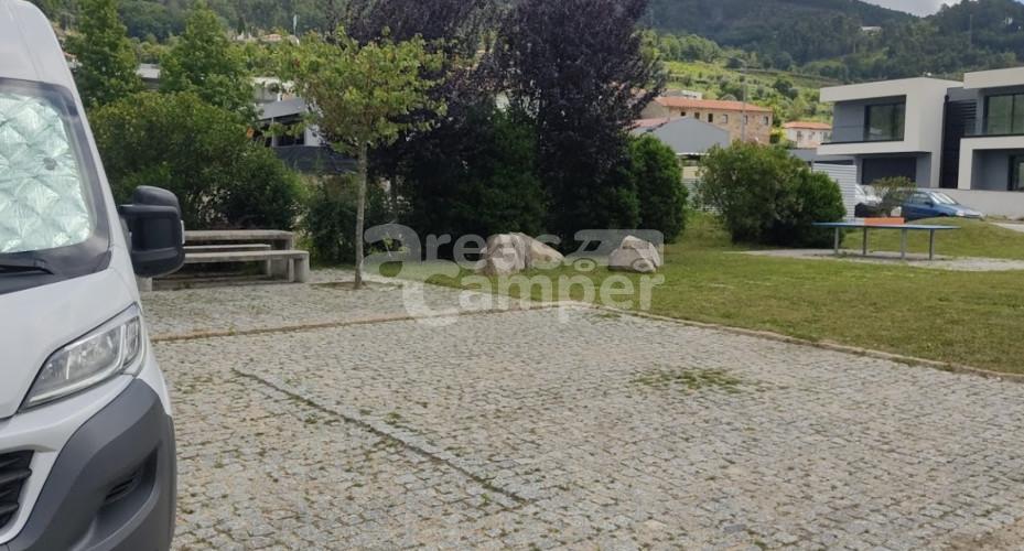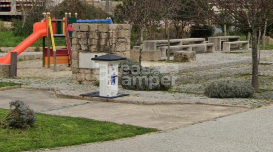 El área de autocaravanas de Cerva (Portugal) se encuentra a 7 km de la carretera A-7, en un terreno asfaltado, bien nivelado, sin sombras, con iluminación nocturna, situado en una zona tranquila para pernoctar, del extrarradio de la población.
