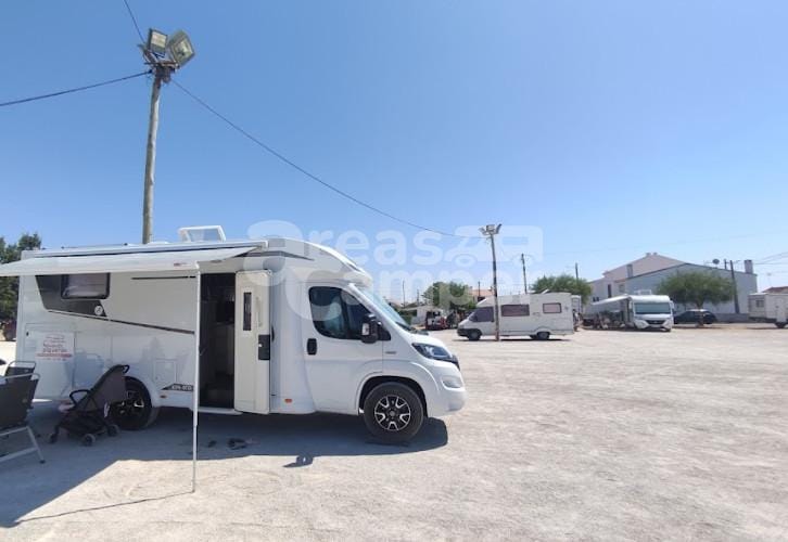 El área de autocaravanas de Comporta (Portugal) Campervan, se encuentra a 0,3 km de la carretera N-253-1, en un terreno asfaltado, bien nivelado, con sombras parciales, con iluminación nocturna, situado en una zona tranquila para pernoctar, del extrarradio de la población.