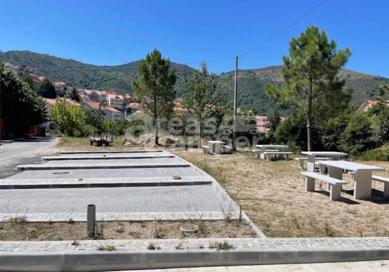 El área de autocaravanas de Loriga (Guarda, Portugal) se encuentra a 700 m de la carretera N231, en un recinto adoquinado con suelo algo desnivelado, plazas reservadas delimitadas e iluminación nocturna, sin sombras, situado en una zona de fácil acceso, tranquila para pernoctar, del extrarradio de la población.