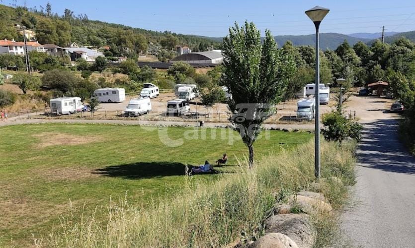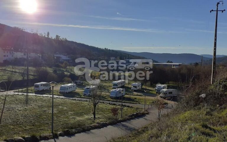 El área de autocaravanas de Unhais da Serra (Portugal) se encuentra a 0,3 km de la carretera N-230, en un terreno de zahorra, bien nivelado, con amplias plazas reservadas delimitadas, algunas sombras e iluminación nocturna, situado en una zona tranquila para pernoctar, del extrarradio de la población.