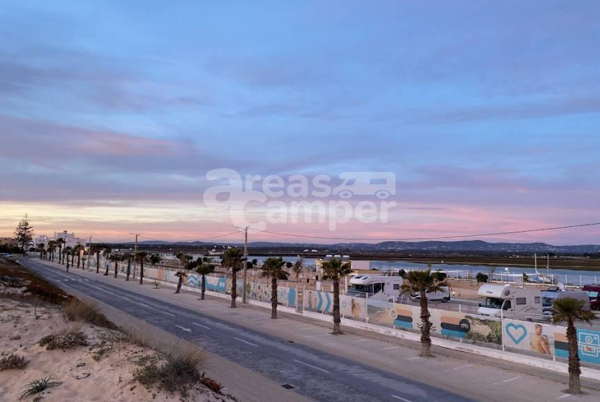 El área de autocaravanas Parque de Campismo Municipal de Faro (Portugal) se encuentra a 6 km de la confluencia de las carreteras N125, N125-10 e IC4, en un recinto privado verjado con suelo de zahorra bien nivelado, plazas reservadas delimitadas e iluminación nocturna, sin sombras, situado en primera línea de playa, una zona de fácil acceso con bonitas vistas, tranquila para pernoctar.