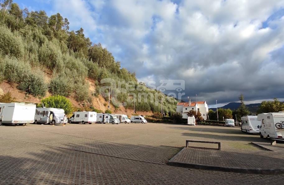 El área de autocaravanas de Góis (Coímbra, Portugal) se encuentra a 300 m de la carretera N2, en un recinto embaldosado bien nivelado, con plazas reservadas delimitadas e iluminación nocturna, sin sombras, situado en una zona de fácil acceso, tranquila para pernoctar, del extrarradio de la población.