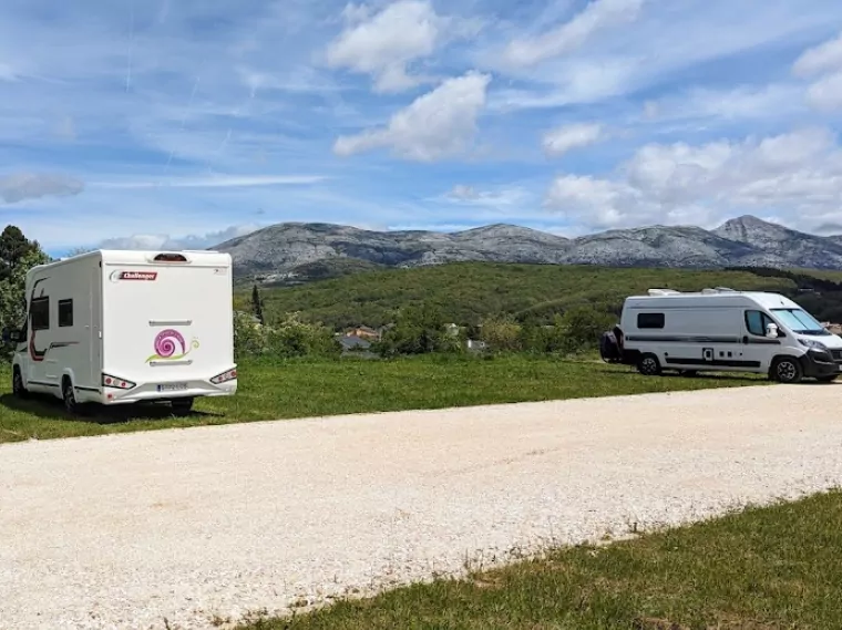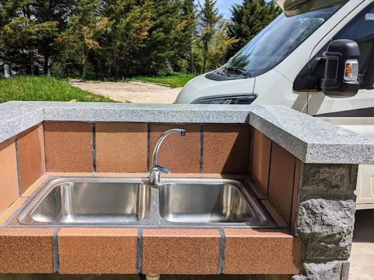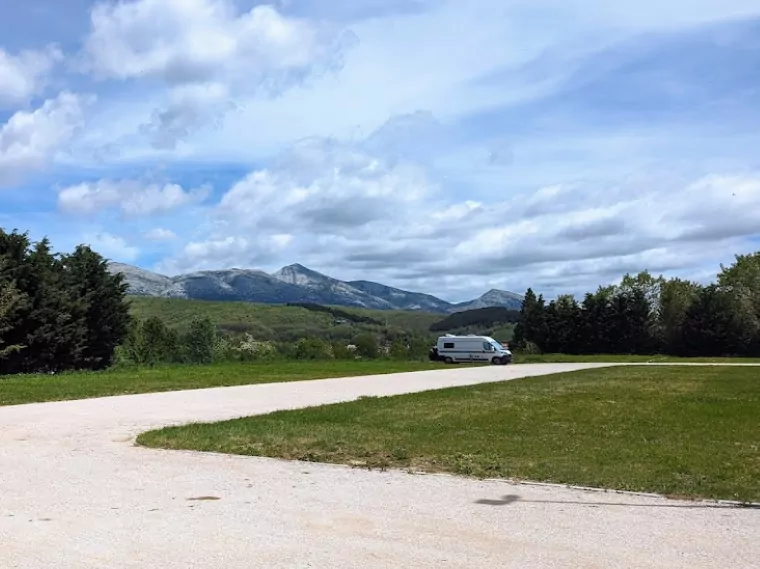 Hay un par de supermercados a menos de 100 metros del área de autocaravanas, y también gasolinera y un taller mecánico.