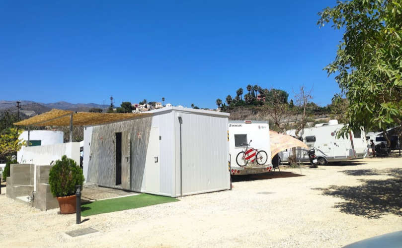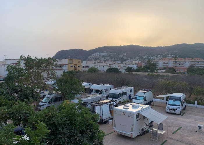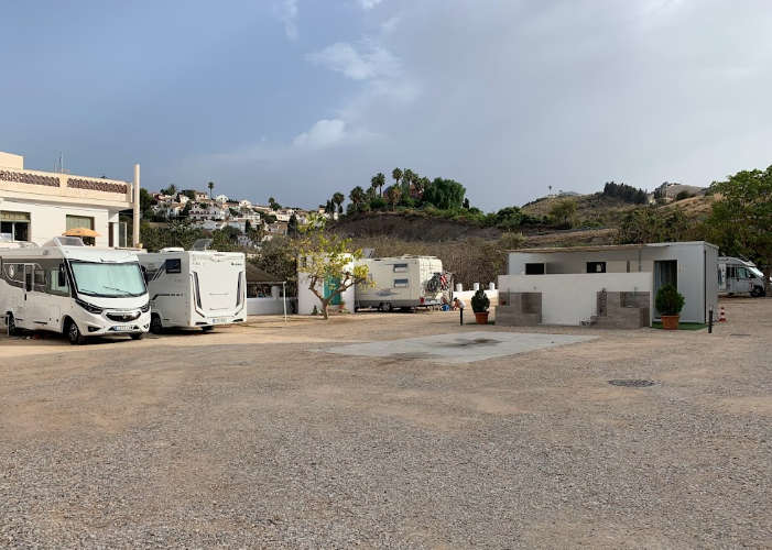 El área de autocaravanas La Herradura en Almuñecar (Granada) se encuentra a 3 km de la salida 305 de la autovía A-7 y a 300 m de la carretera N-340, en un recinto vallado con suelo de zahorra bien nivelado, plazas delimitadas, algunas sombras, e iluminación nocturna, situado a 100 m de la Playa La Herradura, en una zona de fácil acceso, tranquila para pernoctar, del extrarradio de la población.