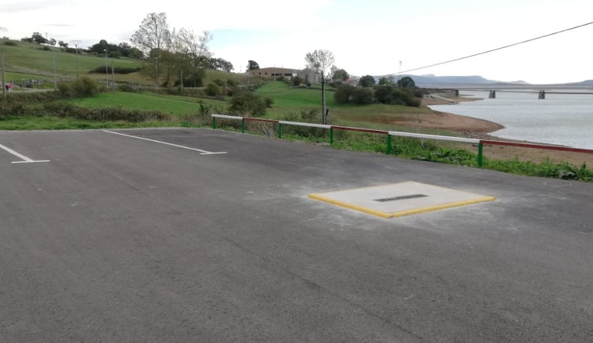 El área de autocaravanas de La Población (Cantabria) se encuentra a 0,6 km de la carretera CA-171, en un recinto asfaltado, bien nivelado, sin sombras, con iluminación nocturna, situado junto al embalse del Ebro, en una zona tranquila para pernoctar, del extrarradio de la población.