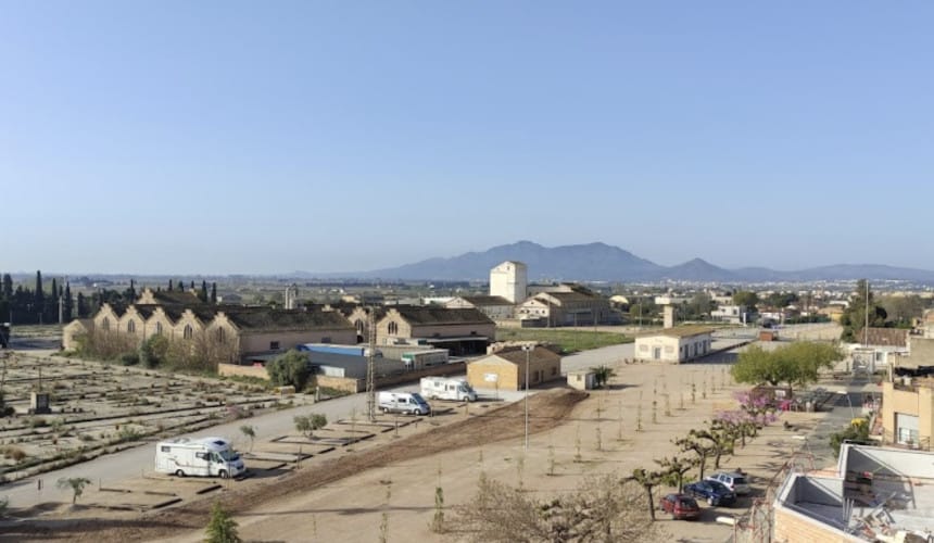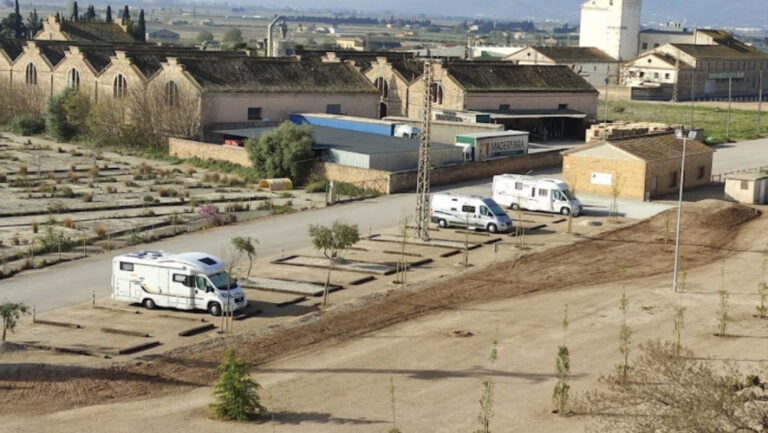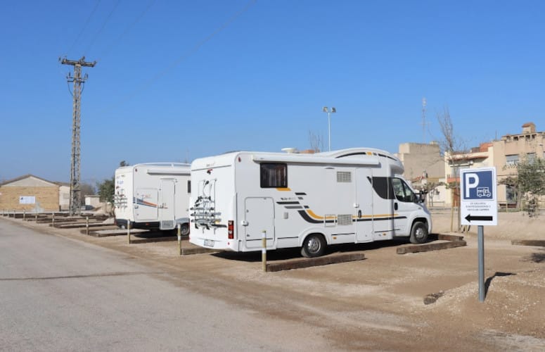 El área de autocaravanas de l’Aldea (Tarragona) se encuentra a 1,5 km de la carretera N-340 y a 2,5 km de la salida de la autovía AP-7, en un terreno de zahorra bien nivelado, con sombras (aunque los árboles aún son pequeños), plazas delimitadas e iluminación nocturna, situado en una zona de fácil acceso tranquila para pernoctar en el casco urbano de la población.
