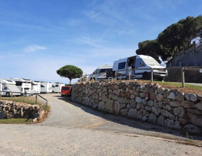 El área de autocaravanas de Palamós (Girona) se encuentra a 1 km de la carretera C-31, en un recinto vallado con suelo de zahorra bien nivelado, plazas delimitadas e iluminación nocturna, sin sombras, situado en una zona de fácil acceso con bonitas vistas, tranquila para pernoctar, del extrarradio de la población.
