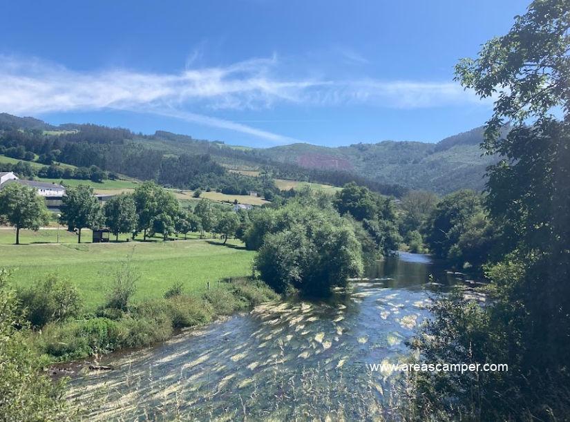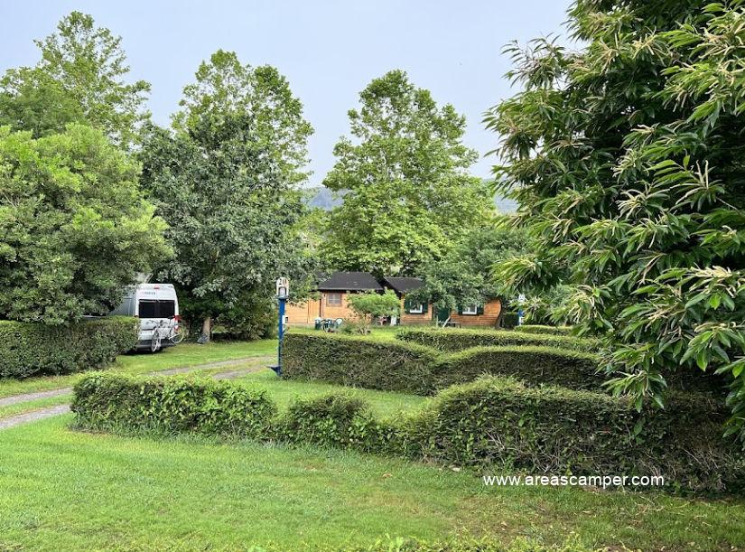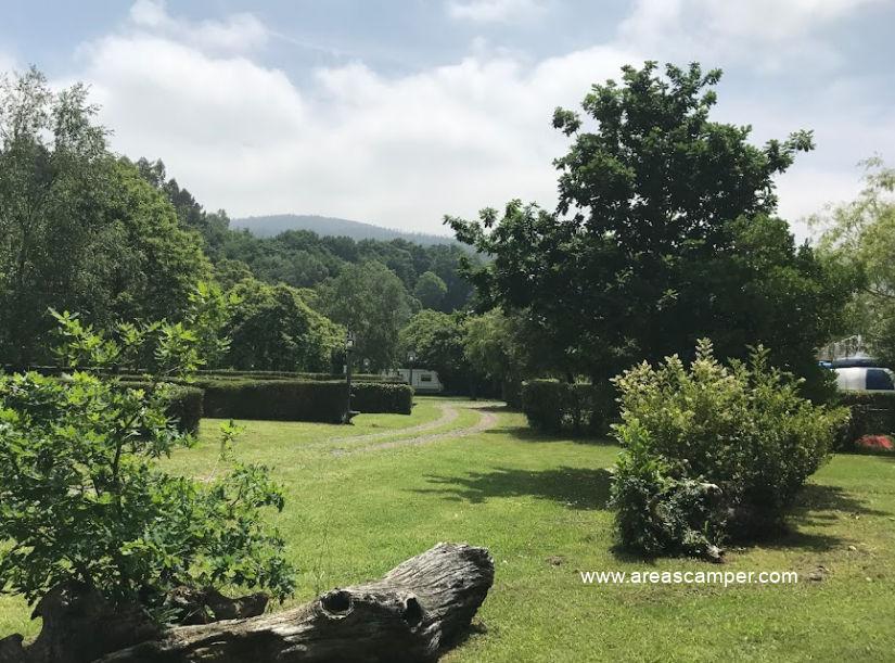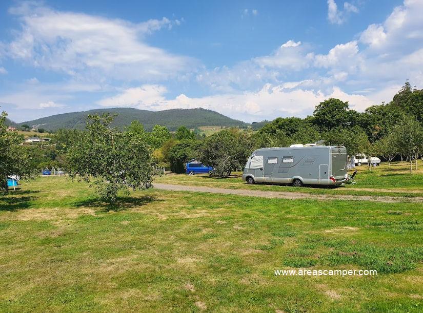 El área camper Camping Amaido de San Tirso de Abres (Asturias) se encuentra a 1 km de la carretera N-640, en un recinto privado verjado con suelo de césped algo desnivelado, amplias plazas reservadas delimitadas, sombras e iluminación nocturna, situado en una zona de fácil acceso con bonitas vistas, tranquila para pernoctar en plena naturaleza.