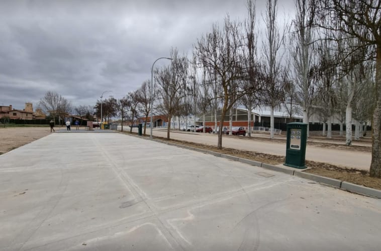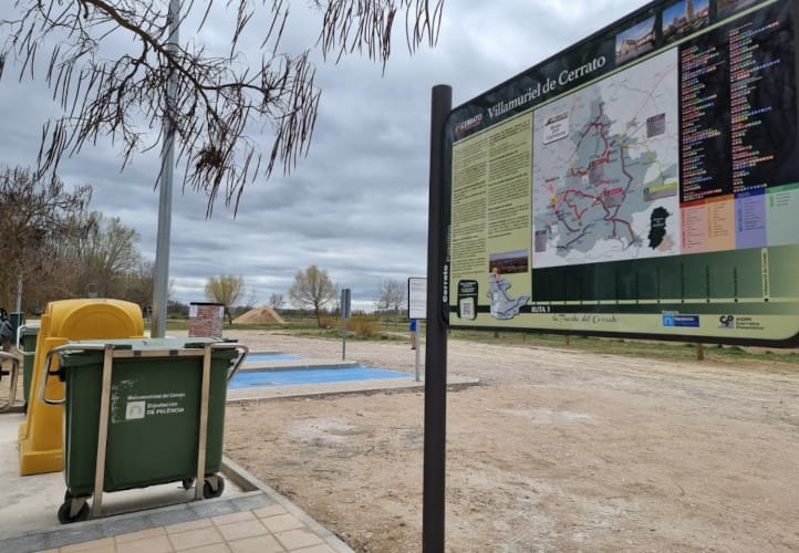 El área de autocaravanas de Villamuriel de Cerrato (Palencia) se encuentra a 2 km de la salida de la autovía A-67 y a 4 km de la A-62, en un estacionamiento con suelo de hormigon semipulido bien nivelado e iluminación nocturna, y plazas delimitadas sin sombras, situado frente a las piscinas municipales en una zona de fácil acceso tranquila para pernoctar, del extrarradio de la población.
