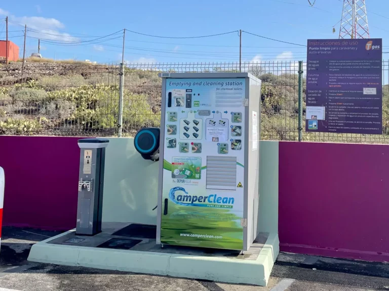 El área de autocaravanas de San Isidro (Santa Cruz de Tenerife) es un punto de servicio con los servicios de toma de agua y vaciado de depósitos, que se encuentra a 200 m de la salida 55 de la autovía TF-1, junto a la carretera TF-64, en un recinto asfaltado bien nivelado con iluminación nocturna, sin sombras ni plazas reservadas, situado en la Estación de Servicio Tgas El Médano, en una zona de fácil acceso, tranquila para pernoctar, del extrarradio de la población.