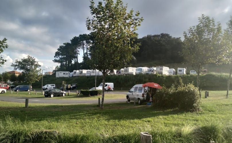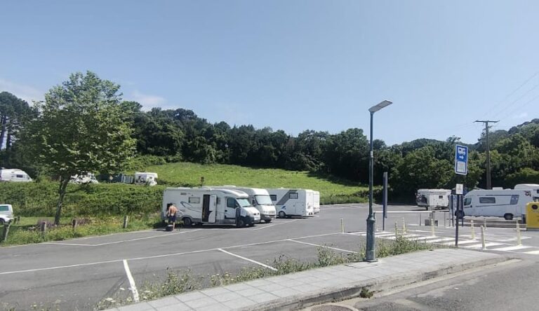 El área de autocaravanas de Bakio (Bizkaia) se encuentra a unos 400 metros (3 minutos andando) de la amplia playa de Bakio, en un parking tranquilo de suelo asfaltado algo desnivelado, y sin sombra.