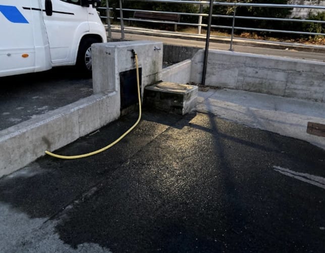 Para entrar al área cámper hay que descargar e instalar la app PVerde, introducir los datos de la tarjeta bancaria, y una vez pagado, en la entrada hay lector de matrículas y se abre la barrera sola. Como se cobra de manera automática hay que llevar cuidado en no pasarse del límite horario, de lo contrario se cobran otra vez.