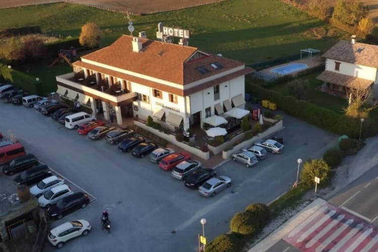 El área de autocaravanas de Ecay de Lónguida (Navarra) es el parking del Hotel Ekai que brinda la posibilidad de pernoctar a las autocaravanas y caravanas.