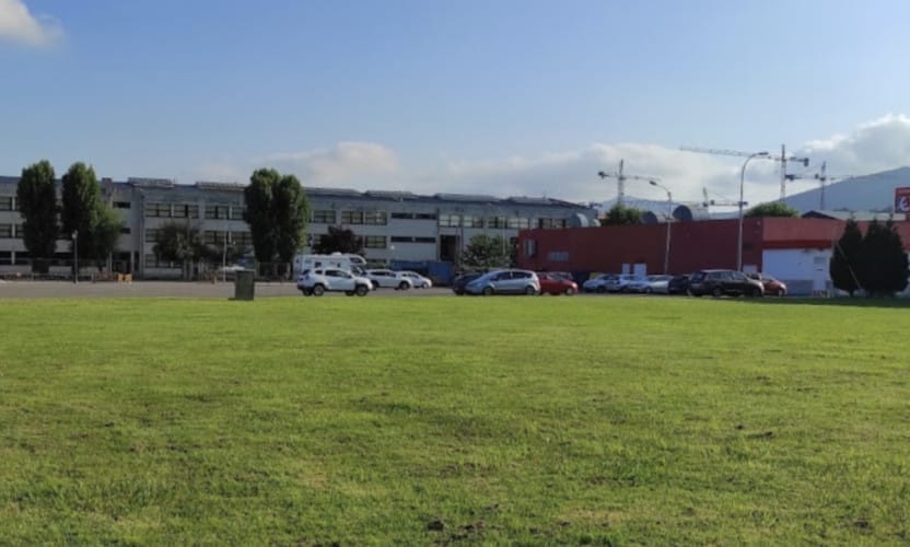 El área de autocaravanas de Navia (Asturias) se encuentra en el parking mixto del Centro Comercial Eroski-Family, sobre suelo asfaltado, bien nivelado, sin sombras, en una zona transitada por vehículos.