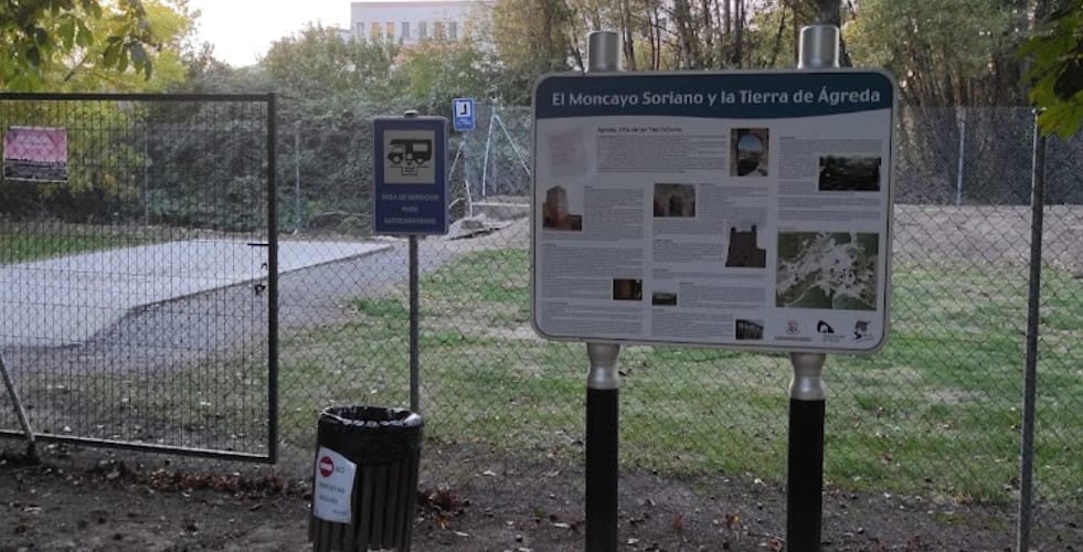 El área de autocaravanas de Ágreda (Soria) se encuentra a 500 m de la carretera N-112, a 1,5 km de la autovía A-15 y a 600 m de la Piscina municipal, en el entorno natural La Dehesa, un terreno de tierra y hierba (cuidado con las lluvias), con sombra, iluminación nocturna, situado en una zona tranquila para pernoctar, del extrarradio de la población.