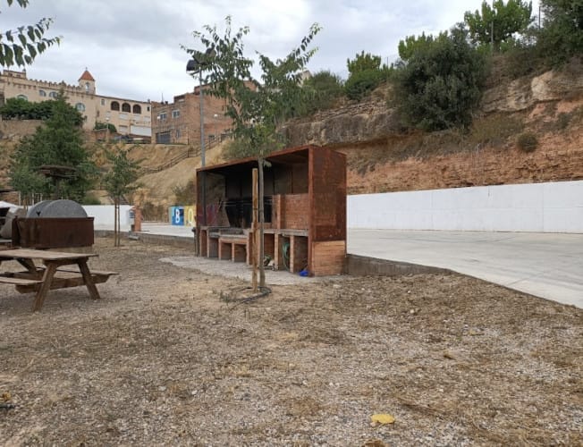En el área de autocaravanas también hay barbacoa y mesas de picnic. Al lado hay una pista de fútbol sala.