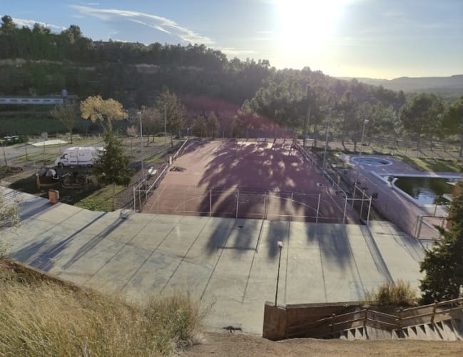 El área de autocaravanas de Bovera (Lleida) se encuentra a 13 km de la carretera C-12, en un recinto con suelo de zahorra bien nivelado y amplias plazas delimitadas con sombra e iluminación nocturna, situado junto a la piscina municipal en una zona de fácil acceso tranquila para pernoctar, del extrarradio de la población.