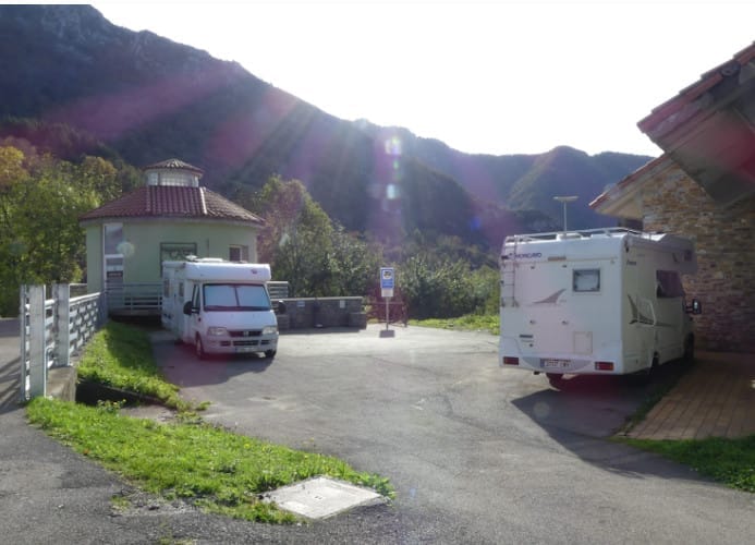 El área de autocaravanas está justo al lado de la Oficina de Turismo, es un área recreativa con piscina (en verano) y hay un albergue municipal, que sirve comidas.
