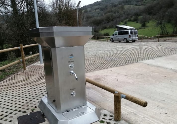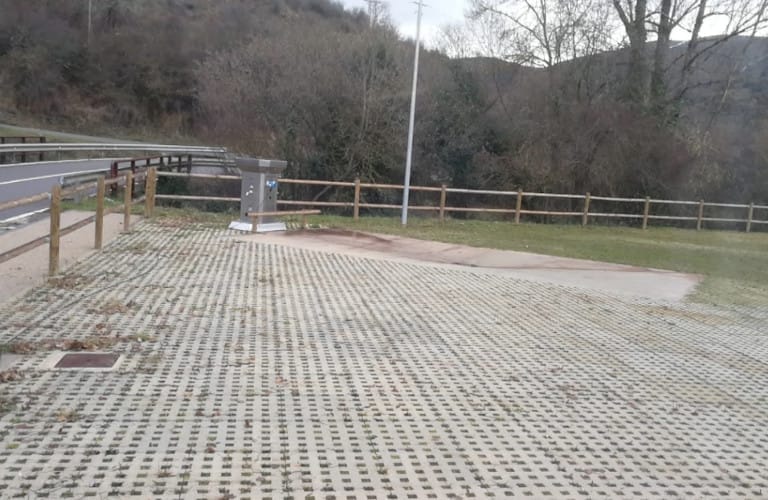 El área de autocaravanas de Canales de la Sierra (La Rioja) se encuentra a 35 km de la carretera N-III, en un amplio recinto embaldosado bien nivelado, con algunas sombras e iluminación nocturna, situado en una zona tranquila para pernoctar, del extrarradio de la población.