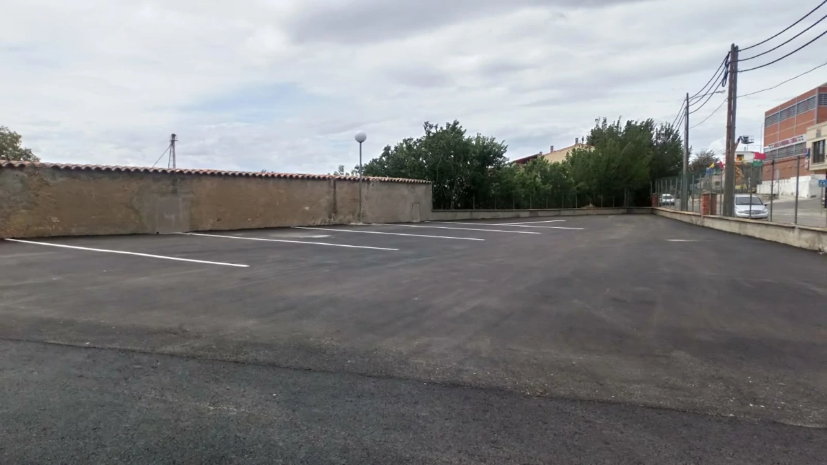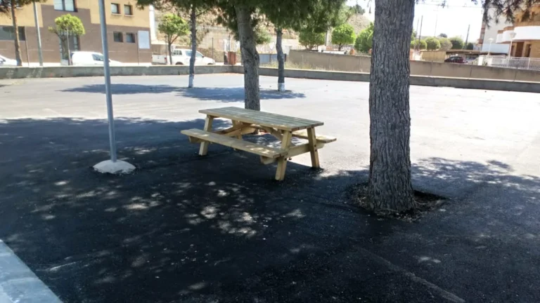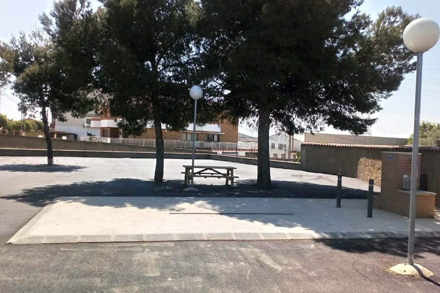 El área de autocaravanas de Caspe (Zaragoza) es de terreno asfaltado bastante bien nivelado y cuenta con una mesa para hacer picnic.