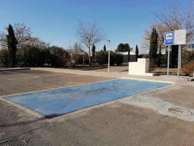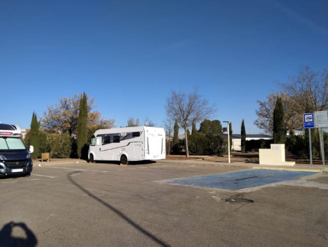 22/10/2022 a las 11:37Area de autocaravanas con seis plazas de aparcamiento. Dispone de rejilla para vaciado de aguas grises, grifo de agua potable, trampilla para vaciado de WC químico con grifo independiente para su limpieza. Piso de asfalto, nivelado, sin sombras. El área está junto a un pequeño parque con bancos; hay contenedores de basura muy cerca, y de reciclaje poco más allá. El centro del pueblo está un poco retirado; tiene restaurantes, comercios y servicios. Gasolinera Repsol a pocos metros. El lugar es tranquilo y las instalaciones nuevas y en perfecto estado.