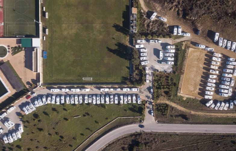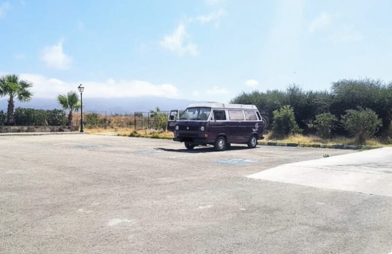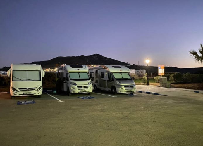 El área de autocaravanas de Facinas (Cádiz) se encuentra a 1 km de la carretera N-340, en un recinto asfaltado bien nivelado, con 4 plazas reservadas delimitadas e iluminación nocturna, sin sombras, situado junto al campo de fútbol y la piscina municipal, en una zona de fácil acceso con bonitas vistas, tranquila para pernoctar, del extrarradio de la población.