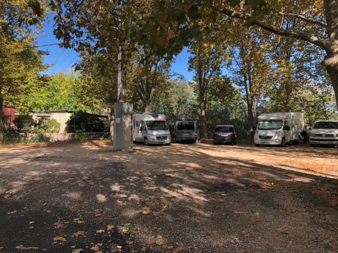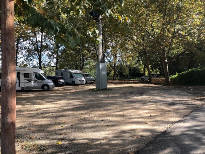 Hay varios parking, el de abajo es donde se ponen todas las autocaravanas, y el de arriba para los coches.
