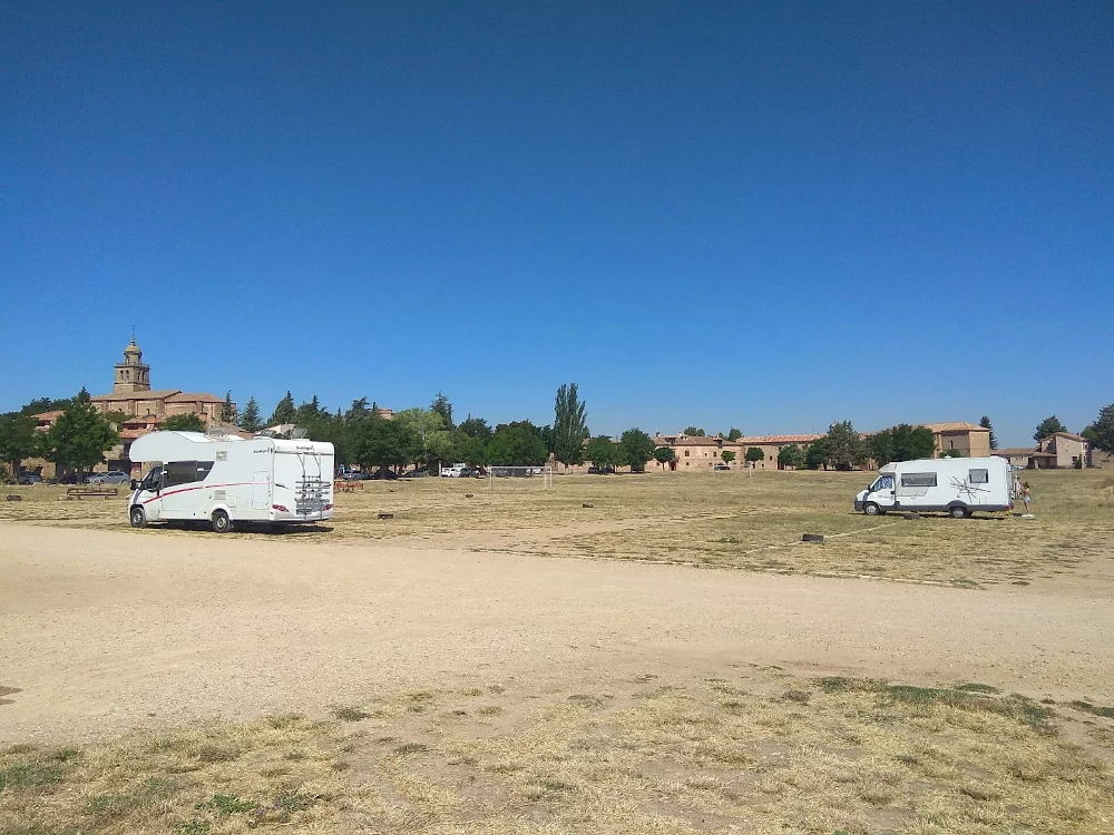 El área de autocaravanas de Medinaceli (Soria) se encuentra a 1 km de las salidas de la autovía A-15 y de la carretera N-II, en un parking mixto de tierra y hierba (cuidado con las lluvias), bien nivelado, sin sombras, sin iluminación nocturna, situado en una zona de fácil acceso con bonitas vistas, tranquila para pernoctar, del extrarradio de la población.