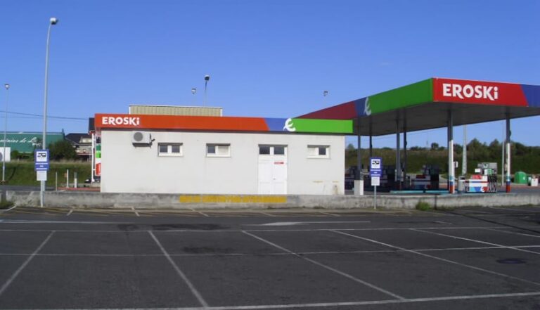 El área de autocaravanas de Ribadeo (Lugo) se encuentra a 1 km de la salida 508 de la autovía A-8, en un recinto asfaltado bien nivelado, con plazas reservadas delimitadas e iluminación nocturna, sin sombras, situado en el parking del Centro Comercial Eroski, junto al Decatlon y el Lidl, en una zona de fácil acceso, tranquila para pernoctar, del extrarradio de la población.