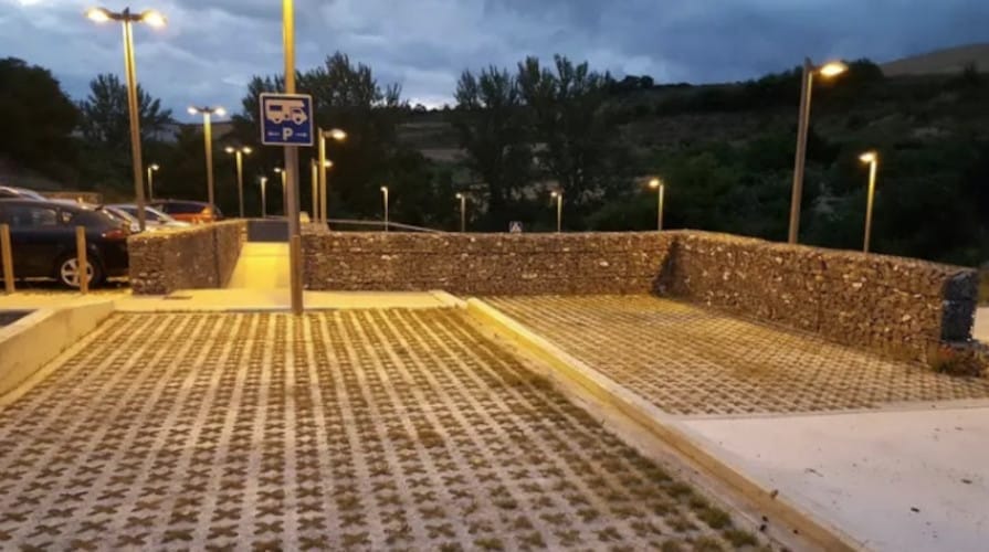 El área de autocaravanas de Salinas de Añana (Álava) se encuentra a 7 km de la carretera AP-68, en un terreno embaldosado, bien nivelado, sombras, iluminación nocturna, situado en una zona tranquila para pernoctar, del extrarradio de la población.
