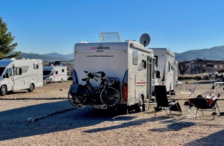 El área de autocaravanas Camperpark Vista Montaña de Salinas (Alicante) se encuentra a 8 km de la carretera E-903, en un terreno asfaltado bien nivelado, con sombras e iluminación nocturna, situado en una zona de fácil acceso tranquila para pernoctar, del extrarradio de la población.