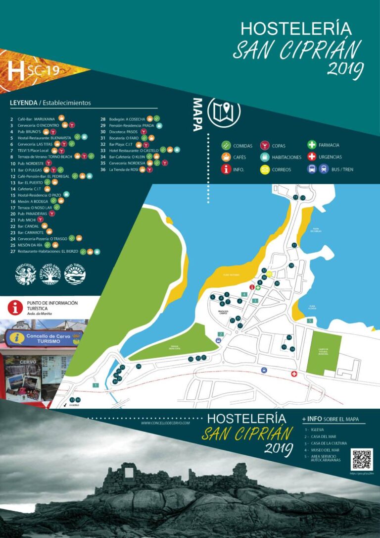 - Otros lugares: Carpintería de Ribeira, Fábricas de Salazón, Faro Punta Atalaya, Presa de Sargadelos y el Paseo dos Namorados.