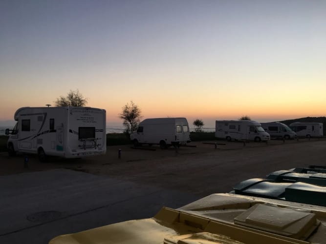 Delante del área de autocaravanas está la Playa Pericón que tiene bandera azul.