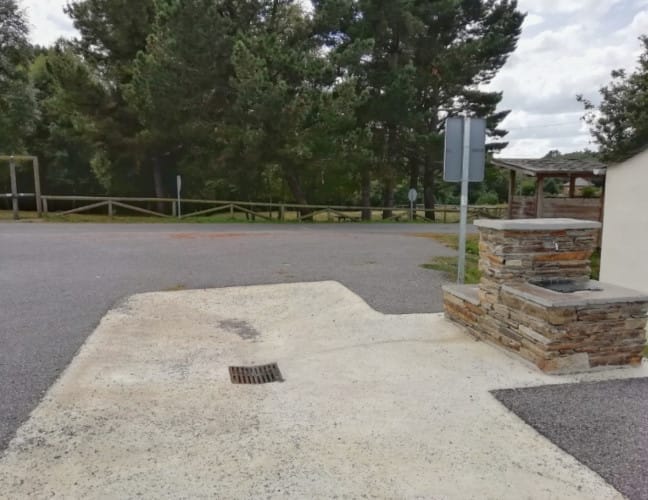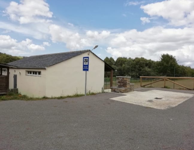El área de autocaravanas de San Martín de Oscos (Asturias) se encuentra a 27 km de la carretera N-640, en un terreno asfaltado algo desnivelado con iluminación nocturna, sin sombras, situado en una zona tranquila para pernoctar, del extrarradio de la población.