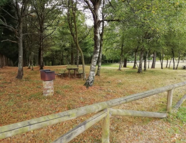 Al lado está el área recreativa Abraira, con mesas de picnic, barbacoas, y el campo de futbol.