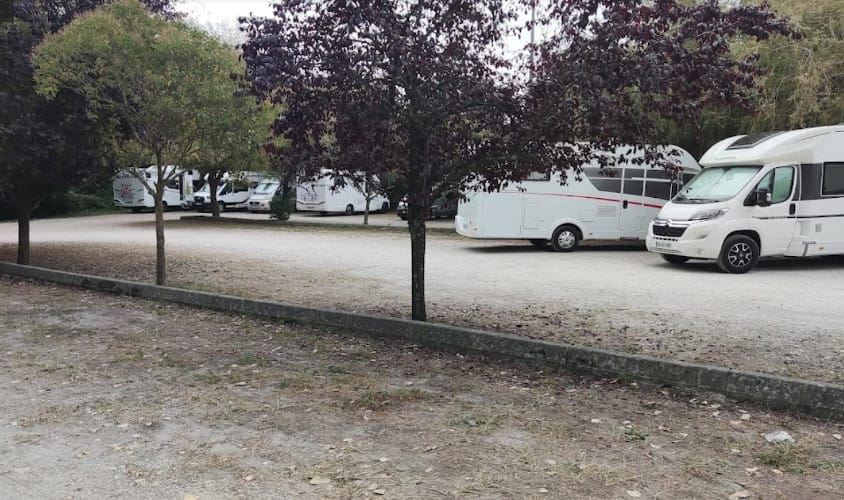 El parking de pernocta de autocaravanas de Santillana del Mar (Cantabria) se encuentra a 5 km de la carretera N-611 y a 7 km de la confluencia de las autovías A-8 y A-67, en un recinto con suelo de zahorra bien nivelado e iluminación nocturna, sin sombras ni plazas delimitadas, situado en una zona de fácil acceso tranquila para pernoctar del extrarradio de la población.