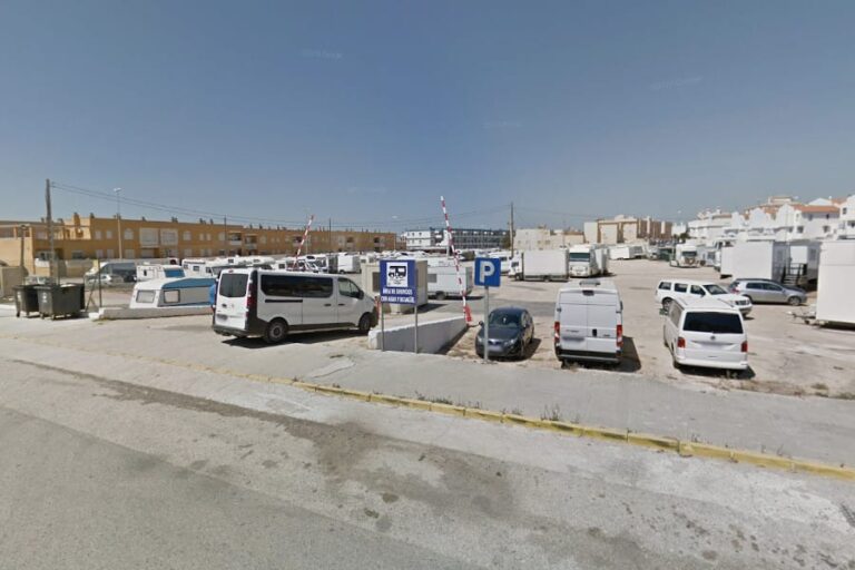 El área de autocaravanas de Tarifa (Cádiz) se encuentra a 2 km de la carretera N-340, en un recinto con suelo de zahorra bien nivelado, sin plazas delimitadas ni sombras ni iluminación nocturna, situado en una zona de fácil acceso, tranquila para pernoctar, del extrarradio de la población.