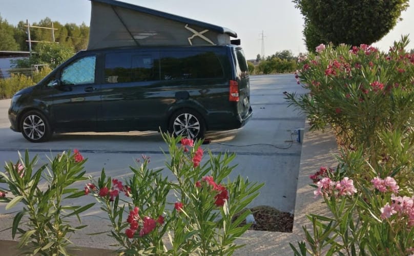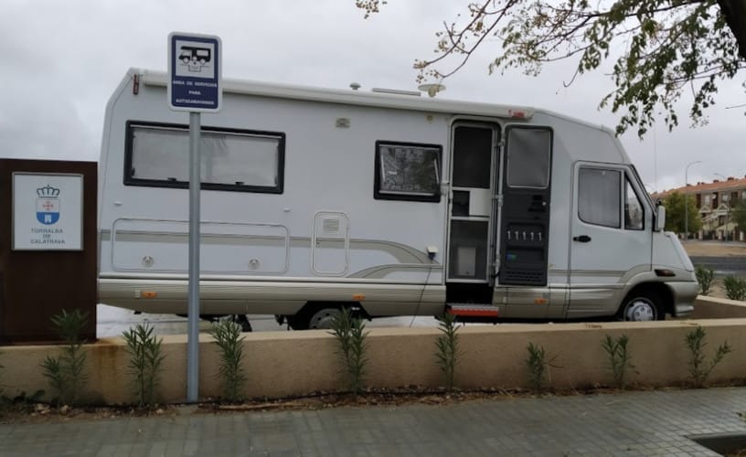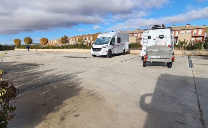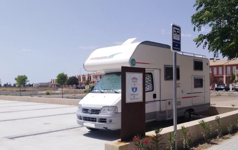 El área de autocaravanas de Torralba de Calatrava (Ciudad Real) está situada junto al campo de fútbol y la piscina municipal.
