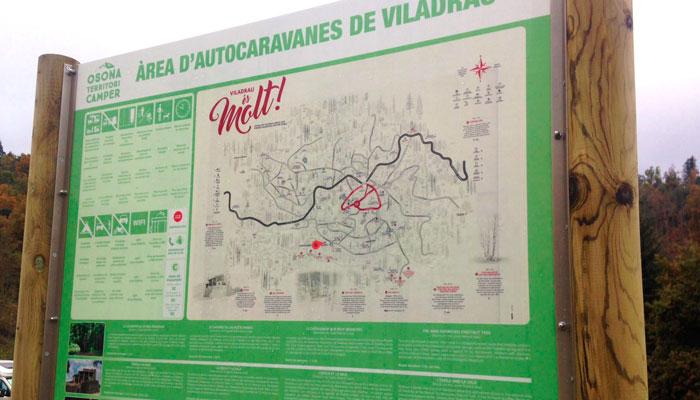 Viladrau es un pueblo de unos 1.100 habitantes, que cuenta con los servicios de hostelería, supermercados, panadería, farmacia, estanco, bancos, centro de salud, etc, disponibles a unos 400 m del área cámper.