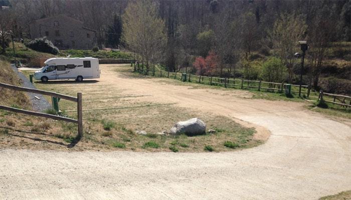 El área de autocaravanas de Viladrau (Girona) se encuentra a 6 km de la autovía C-25 y a 300 m de la carretera GI-520, en un recinto de tierra y hierba bien nivelado, con amplias plazas delimitadas, algo de sombra lateral e iluminación nocturna, situado en una zona rodeada de naturaleza, tranquila para pernoctar, del extrarradio de la población.