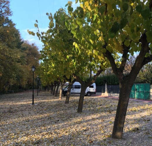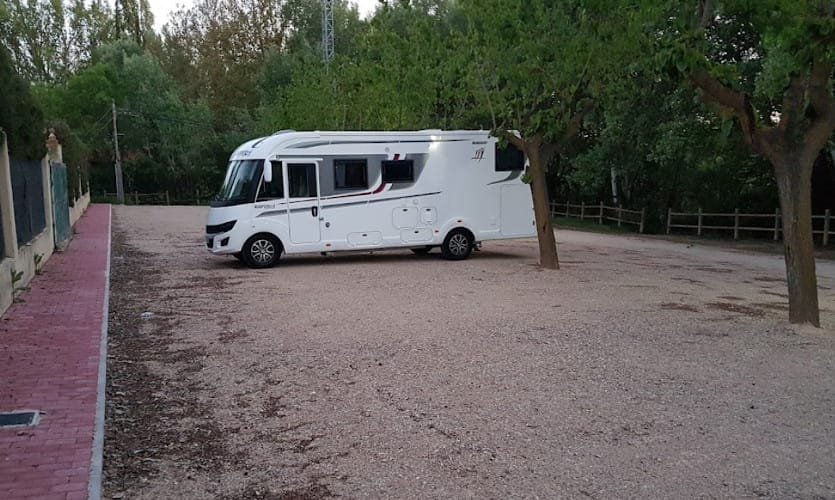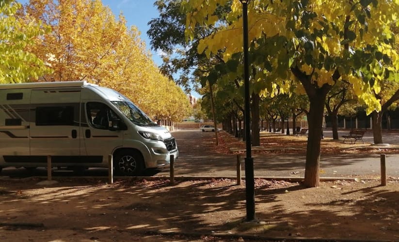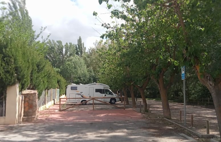 El área de autocaravanas de Villalgordo del Jucar (Albacete) es un área con mucha sombra, ideal para el verano. El suelo es de zahorra, bien nivelado.
