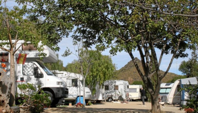 El parking pernocta autocaravanas de Mojácar (Almería) se encuentra a 11 km de la autovía A-7 y la carretera N-340a, en un recinto asfaltado bien nivelado, con plazas delimitadas e iluminación nocturna, sin sombras, situado junto a la piscina municipal en una zona de fácil acceso tranquila para pernoctar, del extrarradio de la población.